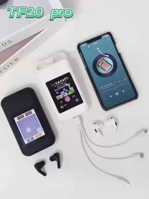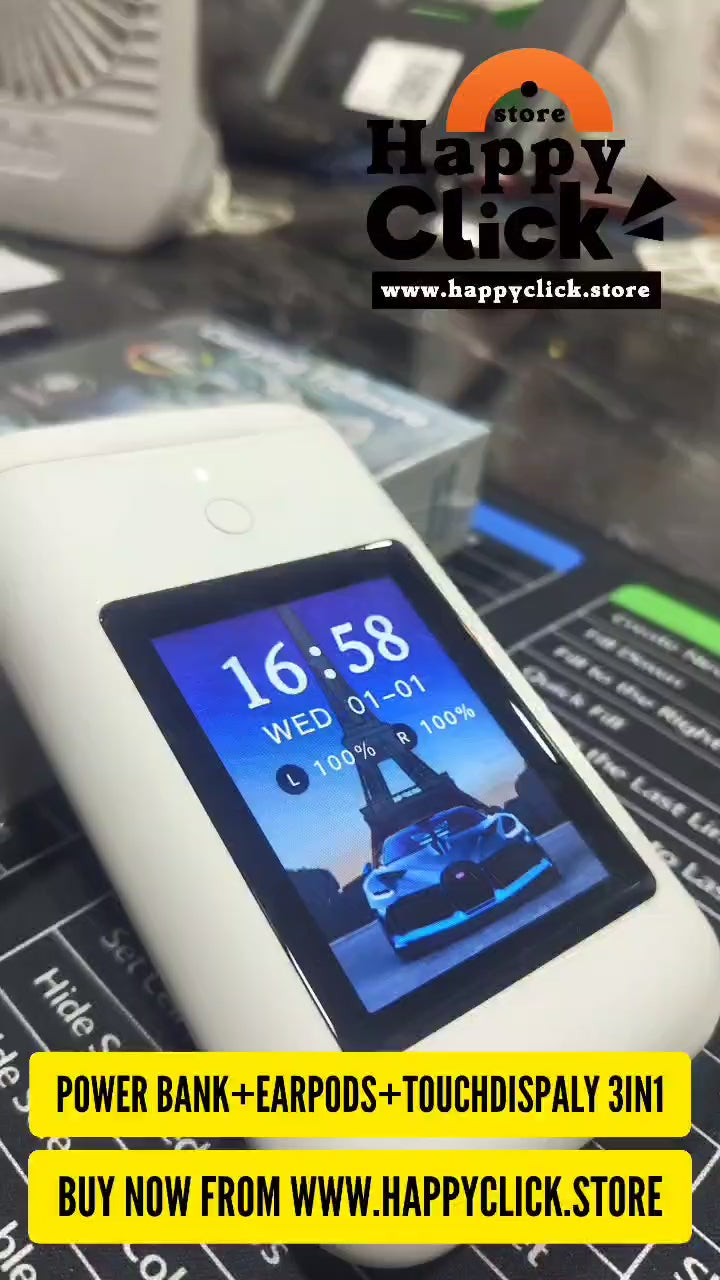 HappyClick TWS Wireless Earbuds + Power Bank + 2.8 Multimedia Screen, Three-in-one